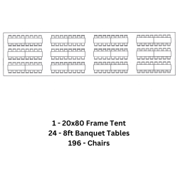 Make a bold statement with the 20x80 Frame Tent — a sleek, expansive solution that combines architectural elegance with all-season reliability. Whether you're hosting a wedding banquet, corporate gala, vendor row, or community celebration, this tent delivers an unforgettable experience with style and function at its core.
