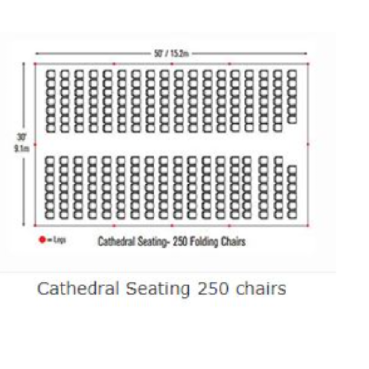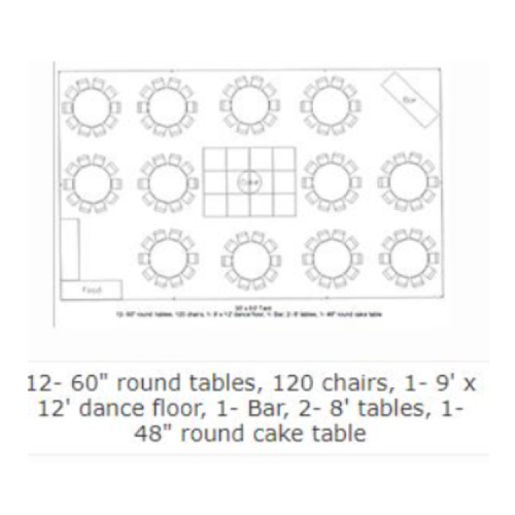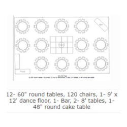 ✅ 1,500 sq ft of open interior – no center poles, full layout flexibility, seating 160 guests with banquet table, 120 guests with Round table or 250 theatre style seating